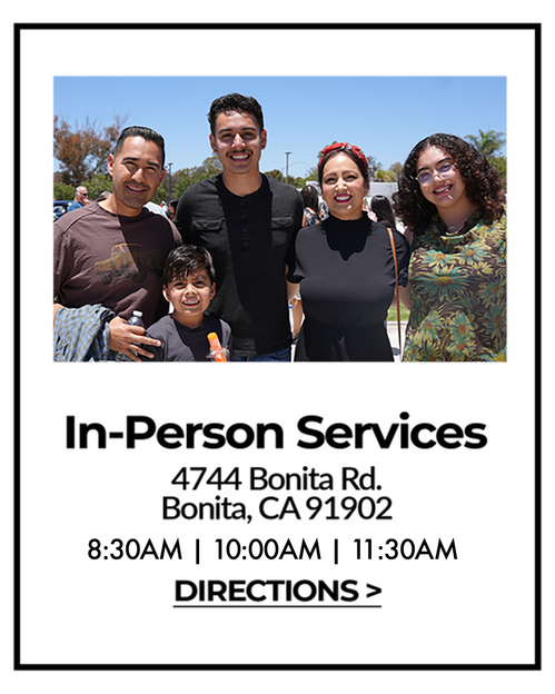When you arrive at Bonita Valley Community Church, our friendly parking team will help you find parking space. Friendly greeters and convenient directional signs will guide you to childcare and kids' classes as well as our worship center. There, you'll find our Information Center counter packed with information and staffed by people who are eager to meet you, find ways we can serve you, and answer any questions you have. Coffee and refreshments are available as well! A 15-minute video countdown will let you know when the service will start.